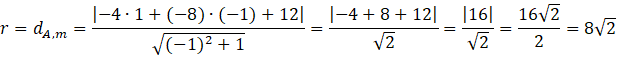 do równań swoich prostych, następnie liczymy odległość prostych od środka okręgu. Wyliczamy punkty styczności. Następnie punkty nanosimy na rysunek. Powstaje nam trapez. Kolejno liczymy długość odcinków