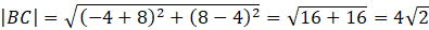 z prostymi przechodzącymi odpowiednio przez punkt A(-12, -4) i B(4, 12).