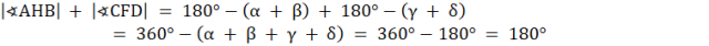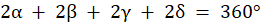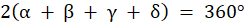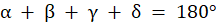 Przyjmij oznaczenia jak na rysunku. Pamiętaj, że suma miar w czworokącie wynosi 360°, a suma miar kątów wewnętrznych w każdym trójkącie wynosi 180°. Sumy miar przeciwległych kątów czworokąta EFGH są równe – na tym czworokącie można opisać okrąg.