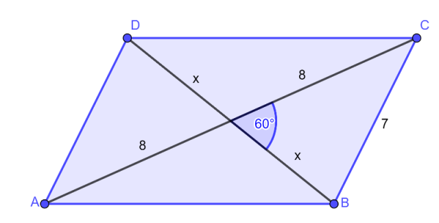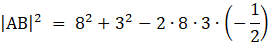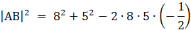 Policz długość odcinka AB. Skorzystaj z twierdzenia cosinusów.