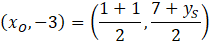 Następnie musisz wyznaczyć współrzędne punktu S. Jeśli S jest symetryczny do R względem prostej y = -3, to środek odcinka RS leży na tej prostej. Wszystkie punkty na tej prostej mają drugą współrzędną wynoszącą -3. Oznacza to, że ten środek odcinka można zapisać (aby uniknąć kolizji oznaczeń oznacz go inną literą niż S, np. O):