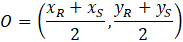Teraz musisz zapisać ze wzoru współrzędne środka odcinka łączącego punkty R i S oraz podstawić znane współrzędne O: