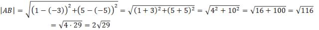 Musisz więc obliczyć długość boku AB. Skorzystaj ze wzoru na długość odcinka łączącego dwa punkty.