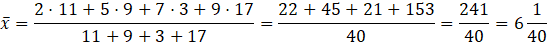 Więc średnia arytmetyczna podanego zestawu liczb wynosi: