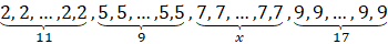 11 + 9 = x + 17
