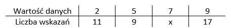 W tym zadaniu musisz wyznaczyć średnią arytmetyczną zestawu danych w tabelce, jeśli jego mediana wynosi 6.