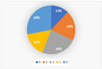 Liczba wszystkich uczniów jest równa 25, oblicz wartości procentowe dla konkretnych danych, a następnie sporządź diagram procentowy kołowy.