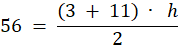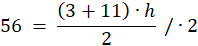 Oszacuj wysokość pewnego trapezu, jeśli jego podstawy wynoszą 3 cm i 11 cm, a pole 56 cm2.