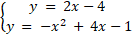 Wyznacz punkty wspólne paraboli o równaniu h(x) = –f(x), wiedząc, że funkcja f(x) = x2 + ax + b przecina prostą g(x) = cx + d w punktach A(1, –2) i B(5, 6).