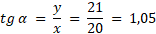 należy punkt A(20, 21), a do ramienia końcowego kąta