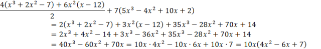 To zadanie powinieneś rozpocząć od podzielenia licznika ułamka przez mianownik. Następnie musisz wymnożyć nawiasy przez czynniki stojące przed nimi. W kolejnym kroku musisz zsumować ze sobą wyrazy podobne. Na końcu musisz wyłączyć przed nawias 10x.