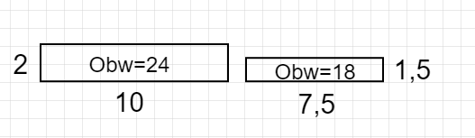 Skala podobieństwa to stosunek długości obwodów figur. Wyznacz najpierw tę skalę. Długości boków większego prostokąta są w skali