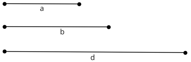 W tym zadaniu narysuj dwa odcinki a i b o różnych długościach, a następnie skonstruuj odcinek, od którego musi być krótszy trzeci bok c trójkąta o bokach a, b, c.