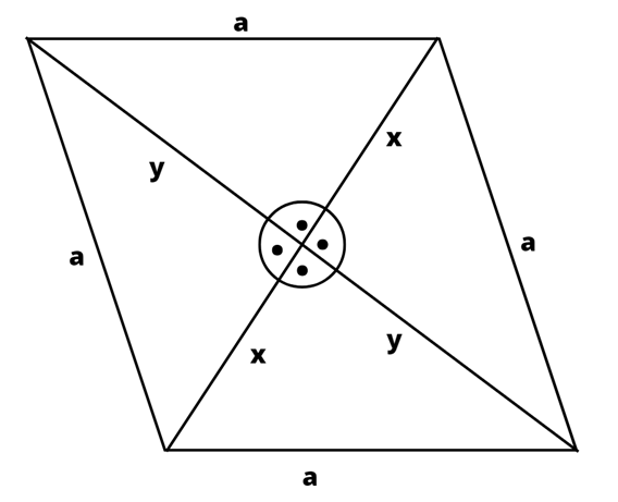 W tym zadaniu udowodnij, że przekątne rombu dzielą go na cztery przystające trójkąty.
