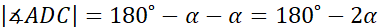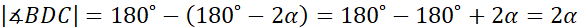 W tym zadaniu oblicz, jaką miarę ma kąt α na rysunku obok, wiedząc, że odcinek CD dzieli trójkąt równoramienny ABC (|AB|=|AC|) na dwa trójkąty równoramienne (|CD|=|AD|=|CB|).