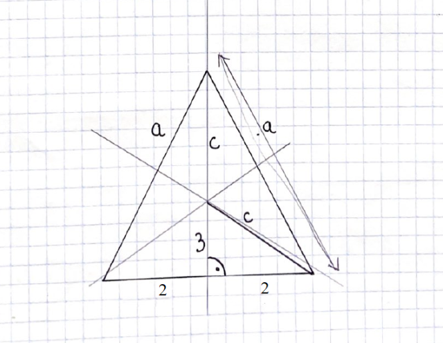 W tym zadaniu oblicz jakiej długości są ramiona tego trójkąta wiedząc, że w trójkącie równoramiennym podstawa ma długość 4, a punkt przecięcia symetralnych boków leży w odległości 3 od podstawy.