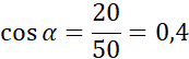 Cosinusem kąta α nazywamy stosunek długości przyprostokątnej leżącej przy kącie α do długości przeciwprostokątnej.