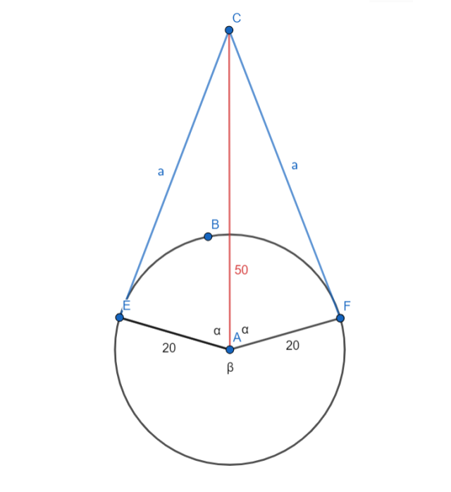 β = 360˚ - 2 ∙ 66,5˚ = 227˚