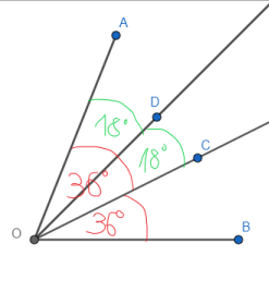 . Poprowadzono w nim dwusieczną OC. W kącie AOC poprowadzono dwusieczną OD. Wyznacz miarę kąta DOB.