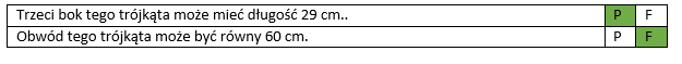 | Trzeci bok tego trójkąta może mieć długość 29 cm. | P | F |