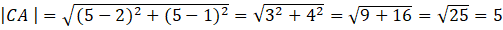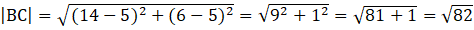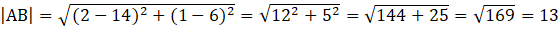 W tym zadaniu musisz obliczyć obwód trójkąta o wierzchołkach w punktach A = (2,1), B = (14, 6) i C = (5, 5).