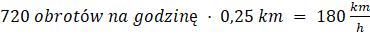 Długość okręgu o promieniu r wyraża się wzorem L = 2πr. Obwód tego koła jest drogą pokonywaną przez końcówki łopat. Aby obliczyć średnią prędkość, należy pomnożyć ilość obrotów wykonywanych w trakcie godziny, przez obwód koła.