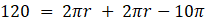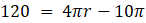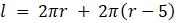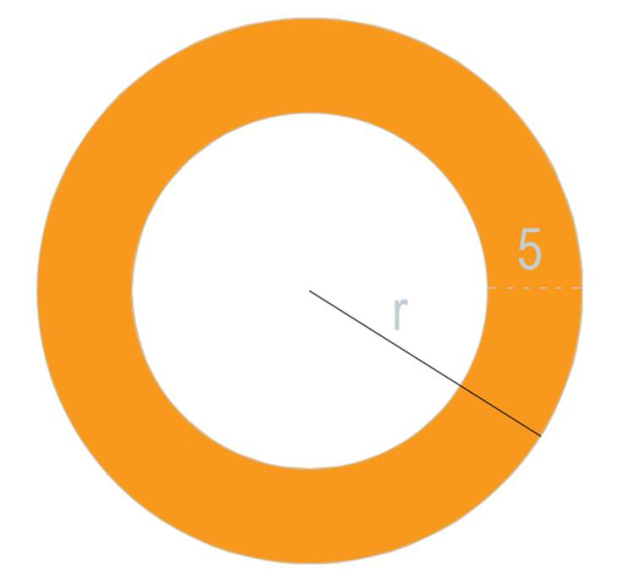 Zwróć uwagę, że obwód pierścienia jest sumą długości dwóch okręgów o promieniach r i r-5