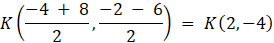 Z warunków podanych w zadaniu wynika, że punkty K, L, M są środkami boków odpowiednio AB, BC i AC. Zatem ich współrzędne wyglądają następująco: