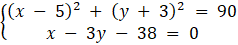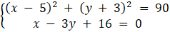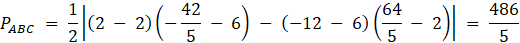 W tym zadaniu musisz znaleźć punkty wspólne prostych z podanym okręgiem, z następnie wyznaczyć pole trójkąta o wierzchołkach w tych punktach.