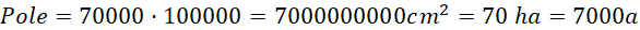 Powierzchnia rzeczywista wynosi 70 ha i 7000 a.