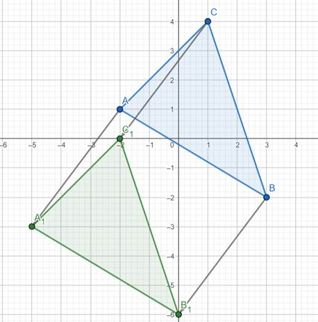 Rysunek przedstawiający przesunięcie równoległe trójkąta ABC o wektor