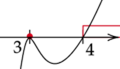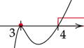 Zaznacz obliczone rozwiązania na osi i przedziały, gdy wykres jest nad lub na osi. Wykres zacznij rysować od góry, ponieważ współczynnik stojący przy
