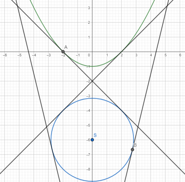Wykonaj rysunek pomocniczy. Zauważ, że musisz znaleźć równania czterech stycznych.