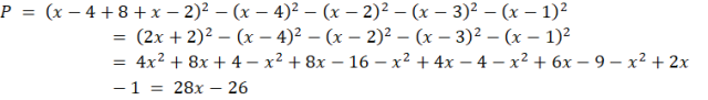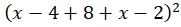 Patrząc na dolny bok dużego kwadratu, można zauważyć, że ma on długość x – 4 + 8 + x – 2. A zatem jego pole jest równe