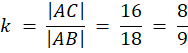 Z rysunku odczytaj, że bok AC w trójkącie ACD odpowiada bokowi AB w trójkącie ABC. Skalę podobieństwa (k) oblicz jako stosunek ich długości.