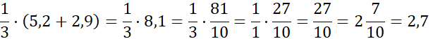 W tym zadaniu oblicz trzecią część sumy liczb 5,2 i 2,9.