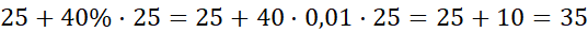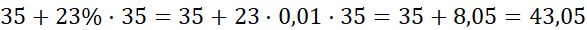 . W celu obliczenia danego procenta z danej liczby wykonaj iloczyn tych liczb przez siebie, zamieniając procent na liczbę. W pierwszej kolejności oblicz, kwotę netto po podwyżce o 40%, a kolejno oblicz cenę brutto z uwzględnieniem podatku VAT.