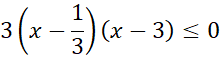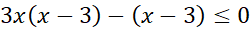 Wyrażenie rozkładamy na nawiasy, wyciągając wspólny czynnik przed nawias [(x-3)]. Pierwiastki wyrażenia znajdujemy, porównując każdy z nawiasów do 0 i następnie patrząc na dodatni współczynnik kierunkowy, zapisujemy zbiór rozwiązań nierówności.