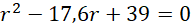 Oblicz z równania kwadratowego długość promienia okręgu, jeżeli .