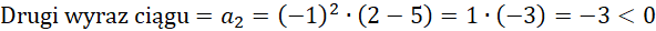 Drugi wyraz ciągu jest ujemny, zatem nie wszystkie wyrazy ciągu an są dodatnie. Zatem drugie zdanie to fałsz.