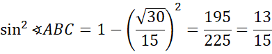 i na tej podstawie oblicz cosinus podanych kątów trójkąta. Następnie skorzystaj z jedynki trygonometrycznej, aby wyznaczyć sinus kąta ABC.