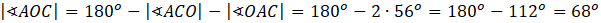 Zauważ, że boki trójkąta AOC: |AO| i |CO| są promieniami okręgu, więc są równe. Oznacza to, że trójkąt AOC jest równoramienny.
