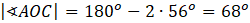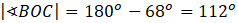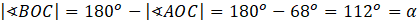 Kąty AOC i BOC tworzą kąt przyległy, więc suma miar ich kątów wynosi
