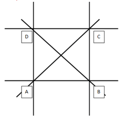 Powstałe proste to: AB, BC, CD, AD, AC, BD