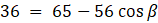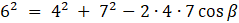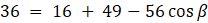 Skorzystaj z twierdzenia cosinusów by wyznaczyć miarę kąta β: