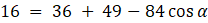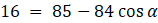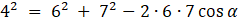 Skorzystaj z twierdzenia cosinusów by wyznaczyć miarę kąta α: