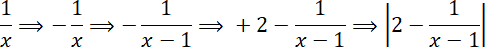 Pierwsze przekształcenie to odbicie względem osi y, potem przesunięcie o 1 w prawo, potem przesunięcie o 2 do góry. Na koniec należy zmazać wszystko co jest pod osią x i narysować to samo, tylko odbite i na górze, bo wartość bezwzględna nie przyjmuje wartości ujemnych, wszystko zamiast do dołu idzie do góry.