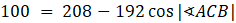 Lina rozciągnięta pomiędzy słupkami ma długość 30 m. Odległość od słupka A do B wynosi 10 m, a od słupka B do C 8 m. Z najdź miarę kąta ACB.