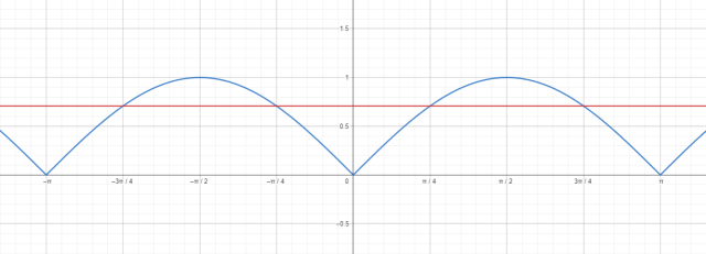 W tym zadaniu musisz powiedzieć, dla których x mieszczących się między –π a π, y funkcji y = |sin x| jest równy