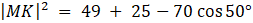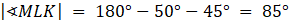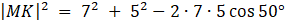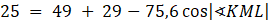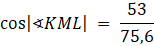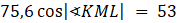 Dany jest trójkąt KLM, znajdź brakujące boki i kąty. |KM| = 7, |KL| = 10, |∢MKL| = 80°.